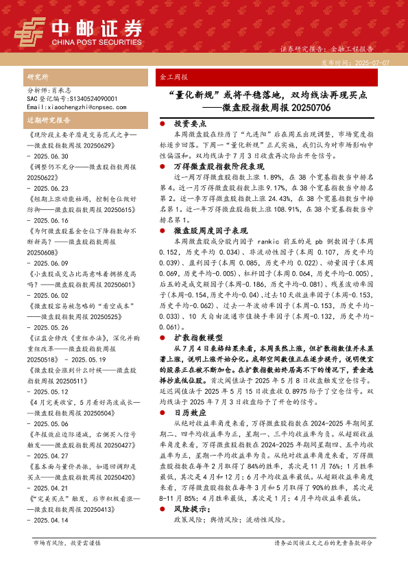 【中邮证券】【20250706】微盘股指数周报_量化新规_或将平稳落地_双均线法再现买点-30页