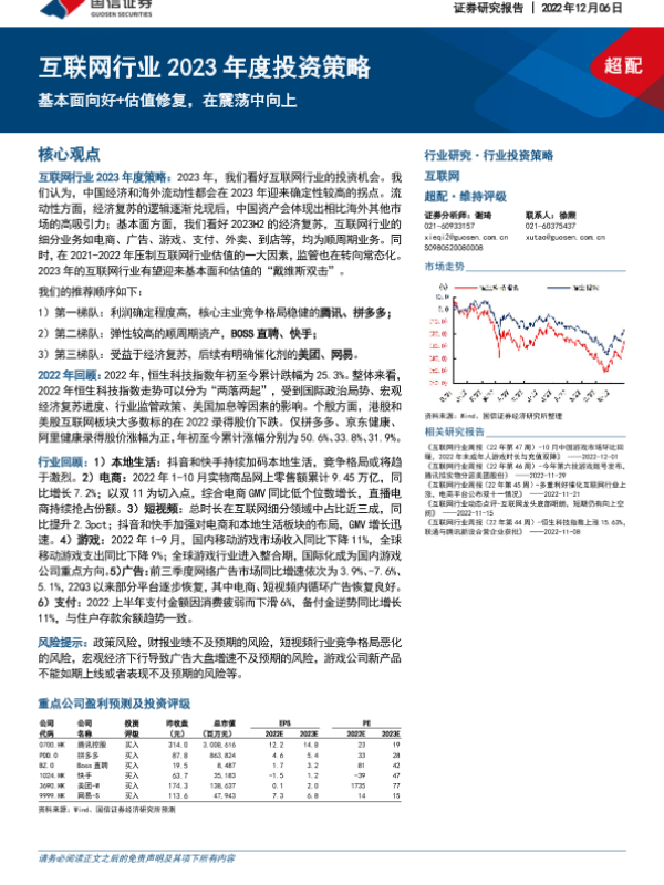 【国信证券】【20221206】互联网行业2023年度投资策略:基本面向好+估值修复,在震荡中向上-40页