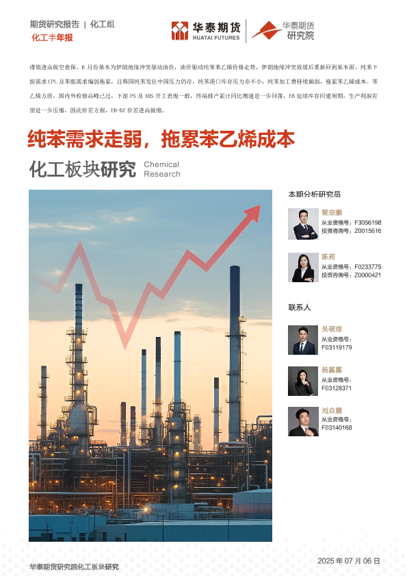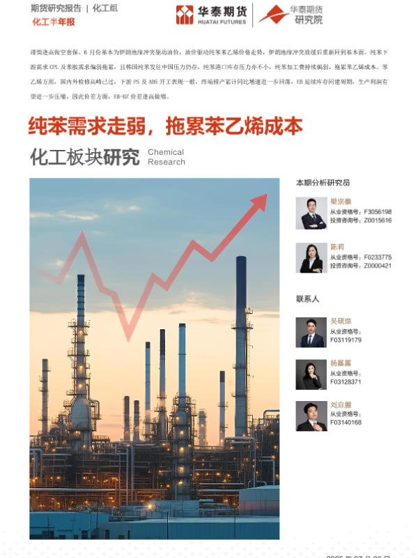【华泰期货】【20250706】纯苯EB半年报:纯苯需求走弱拖累苯乙烯成本-29页