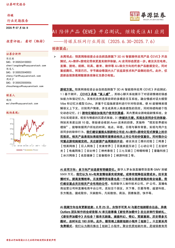 【华源证券】【20250706】传媒互联网行业周报:AI陪伴产品《EVE》开启测试,继续关注AI应用-17页