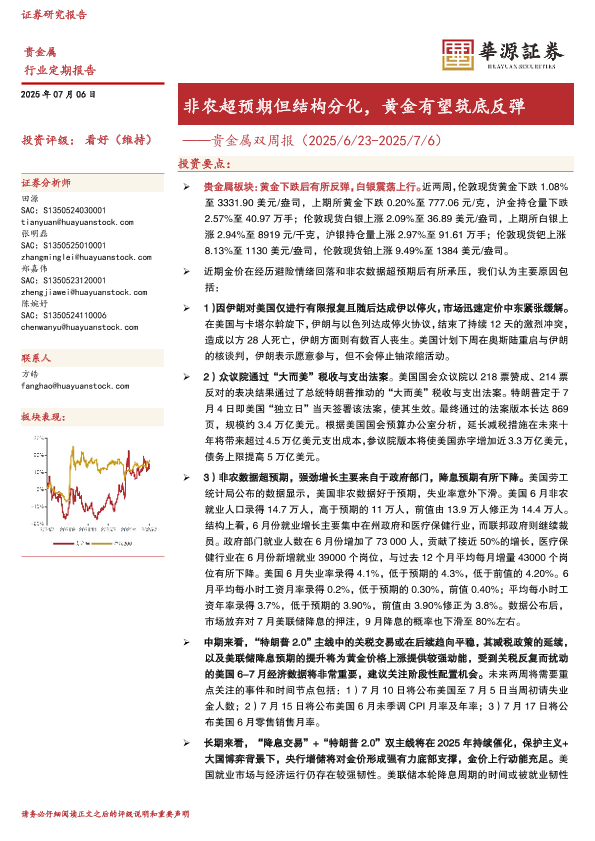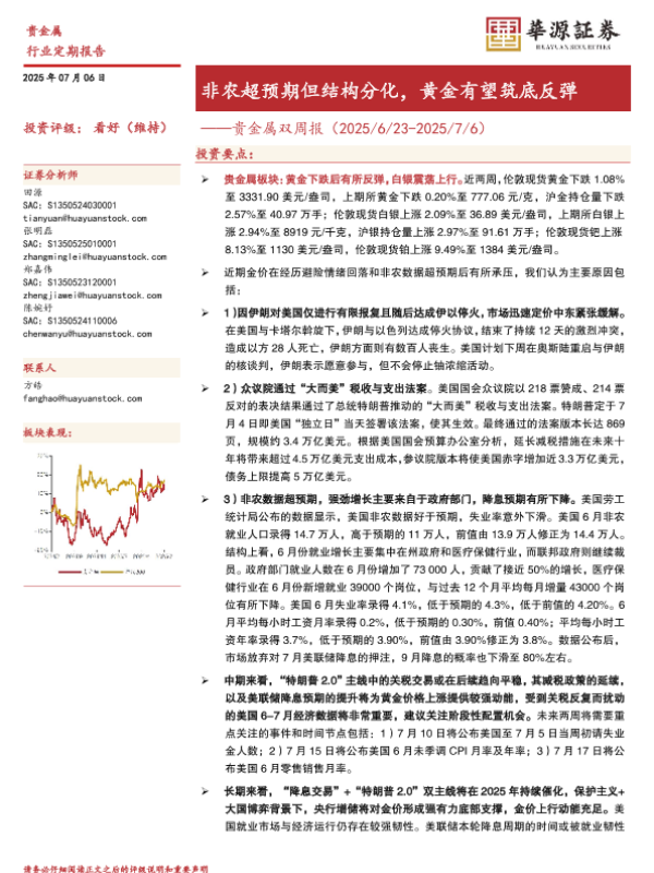【华源证券】【20250706】贵金属双周报_非农超预期但结构分化_黄金有望筑底反弹-13页