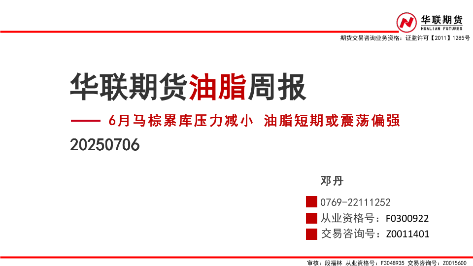 【华联期货】【20250706】6月马棕累库压力减小_油脂短期或震荡偏强-25页