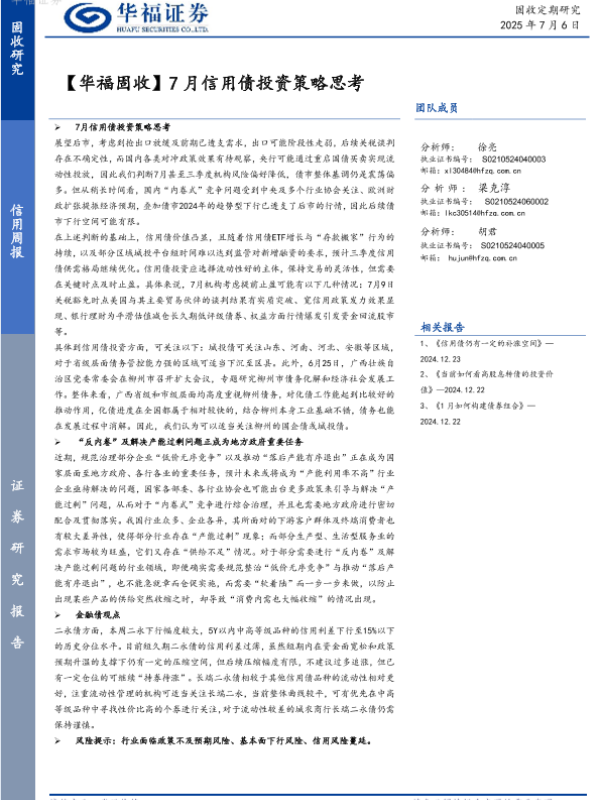 【华福证券】【20250706】7月信用债投资策略思考-21页