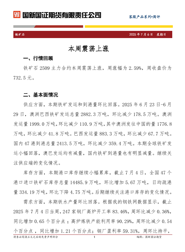 【国新国证期货】【20250706】铁矿石周评_本周震荡上涨-2页