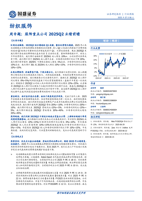 【国盛证券】【20250706】纺织服饰行业周专题_服饰重点公司2025Q2业绩前瞻-19页
