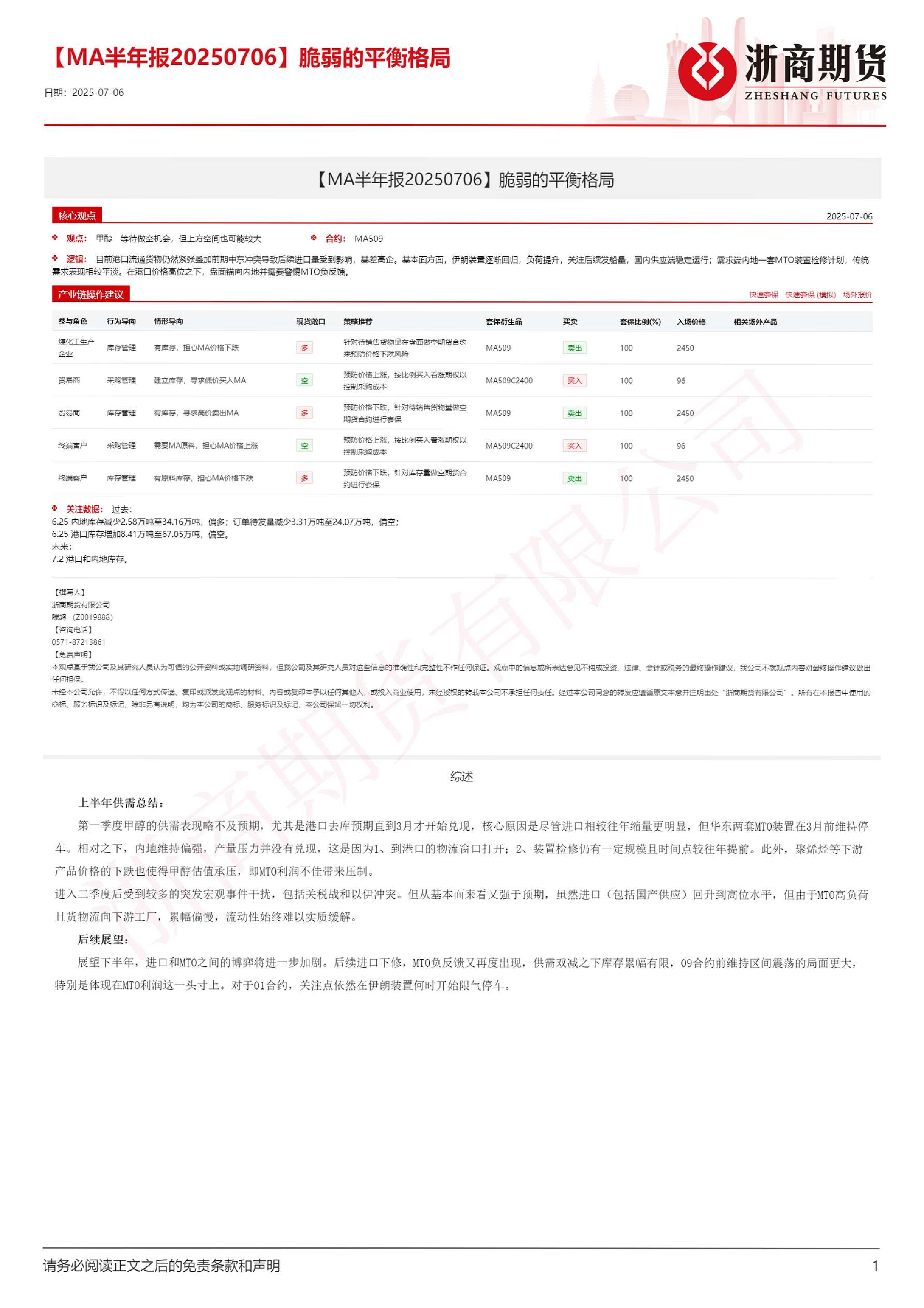 【浙商期货】【20250706】MA半年报 脆弱的平衡格局-23页