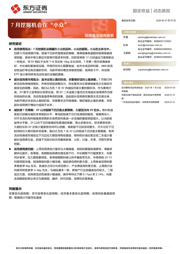 【东方证券】【20250707】信用债市场周观察_7月挖掘机会在_小众-12页