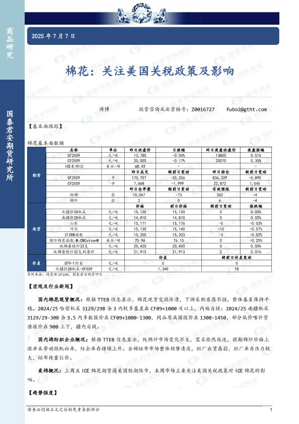 【国泰君安期货】【20250707】棉花:关注美国关税政策及影响-3页