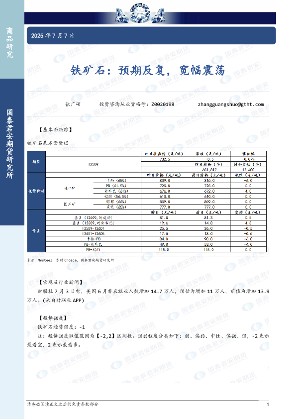 【国泰君安期货】【20250707】铁矿石:预期反复,宽幅震荡-2页