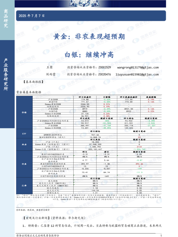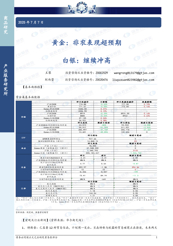 【国泰君安期货】【20250707】黄金_非农表现超预期_白银_继续冲高-3页