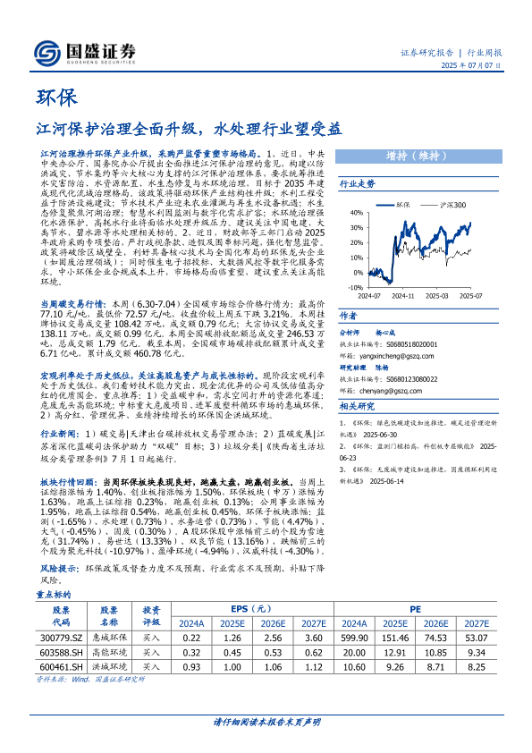 【国盛证券】【20250707】环保行业周报 江河保护治理全面升级, 水处理行业望受益-14页