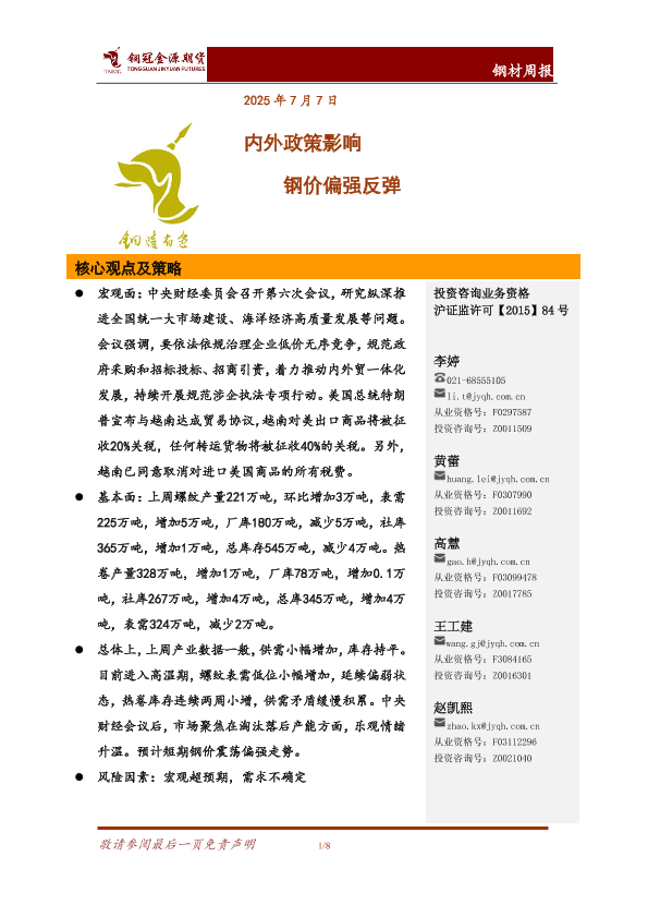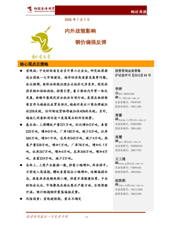 【铜冠金源期货】【20250707】钢材周报_内外政策影响_钢价偏强反弹-8页