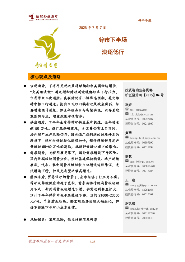 【铜冠金源期货】【20250707】锌市下半场_浪逐低行-23页