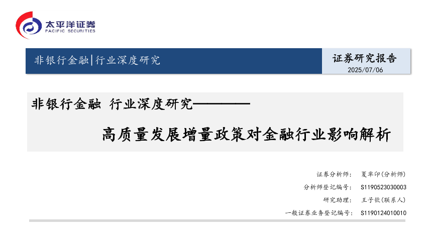 【太平洋证券】【20250706】非银行金融行业深度研究_高质量发展增量政策对金融行业影响解析-36页