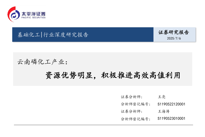 【太平洋证券】【20250706】云南磷化工产业:资源优势明显,积极推进高效高值利用-31页