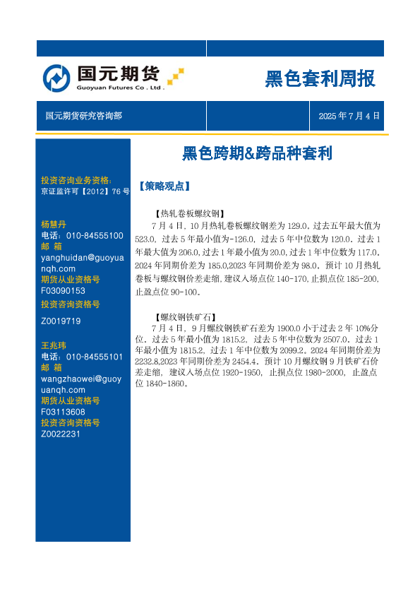 【国元期货】【20250704】黑色套利周报_黑色跨期_跨品种套利-34页