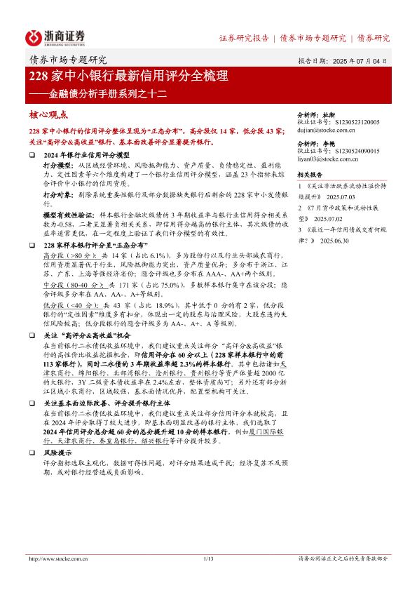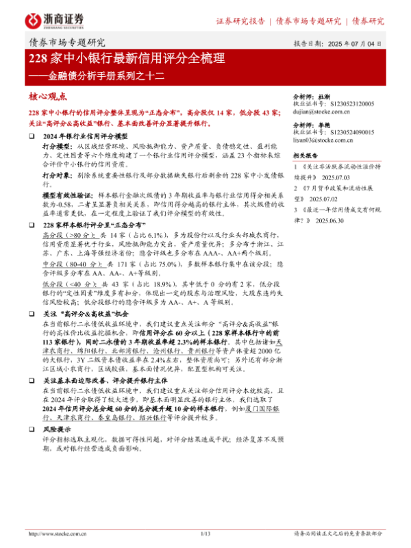 【浙商证券】【20250704】228家中小银行最新信用评分全梳理-13页