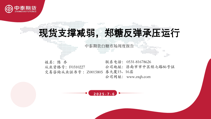 【中泰期货】【20250706】白糖市场周度报告_现货支撑减弱_郑糖反弹承压运行-20页
