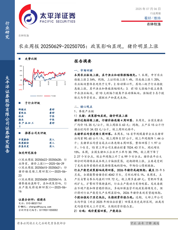【太平洋证券】【20250706】农业周报 20250629-20250705:政策影响显现,猪价明显上涨-18页