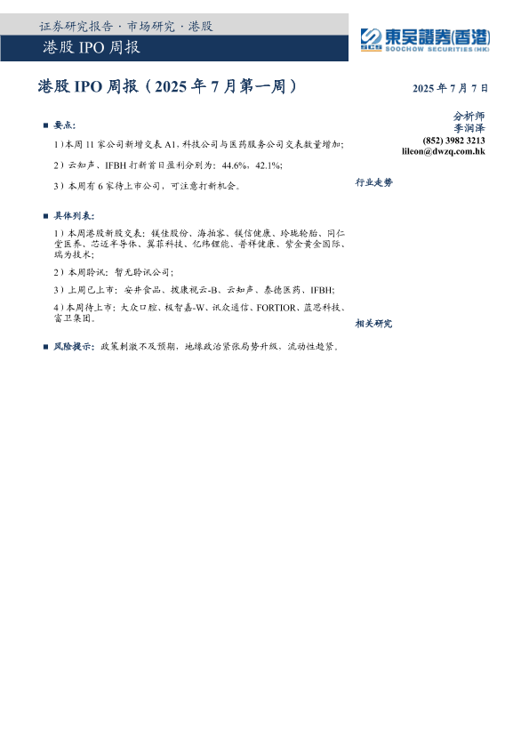 【东吴证券(香港)】【20250707】港股IPO周报(2025年7月第一周)-10页