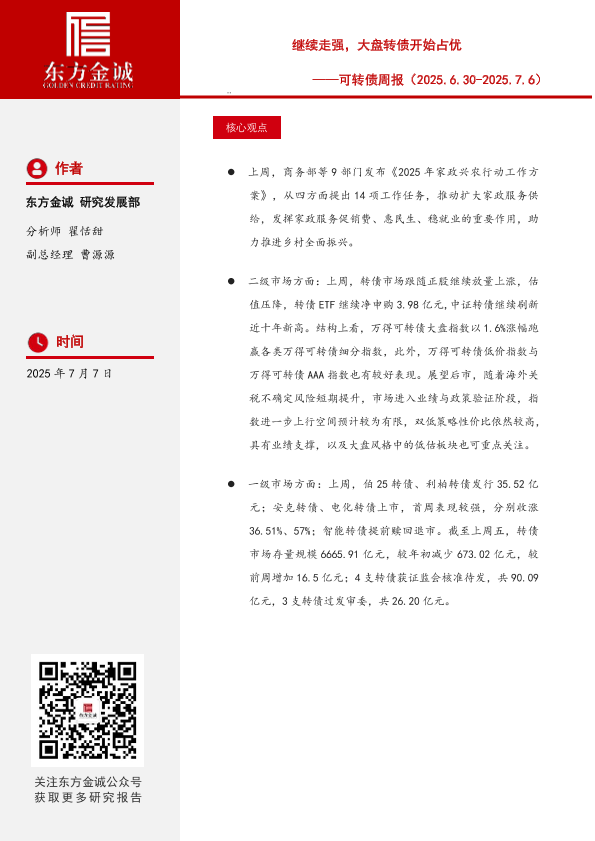 【东方金诚】【20250707】可转债周报_继续走强_大盘转债开始占优-10页