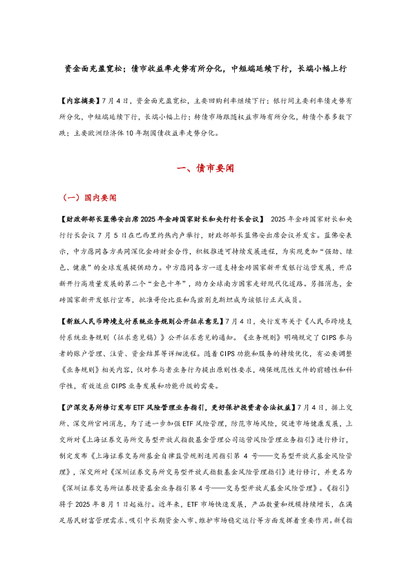 【东方金诚】【20250707】资金面充盈宽松;债市收益率走势有所分化-7页