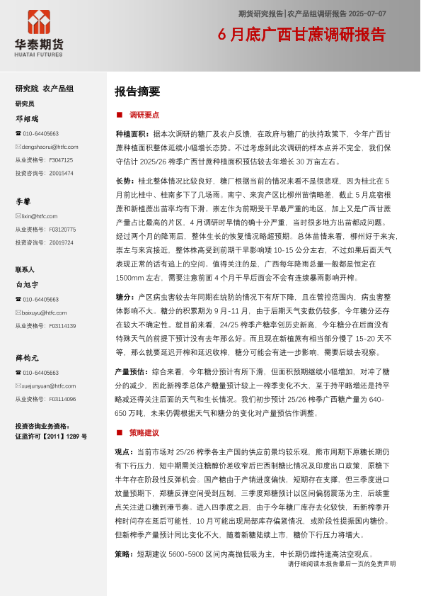 【华泰期货】【20250707】6月底广西甘蔗调研报告-13页