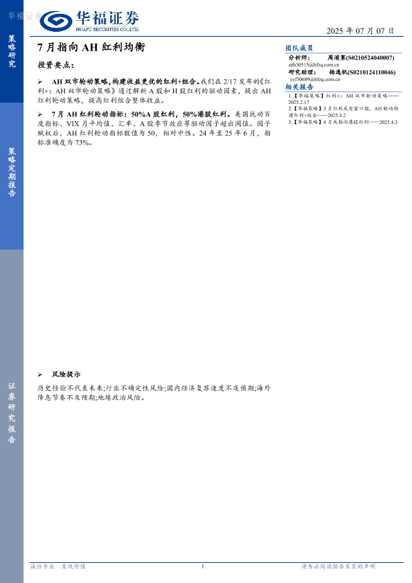 【华福证券】【20250707】7月指向AH红利均衡-5页