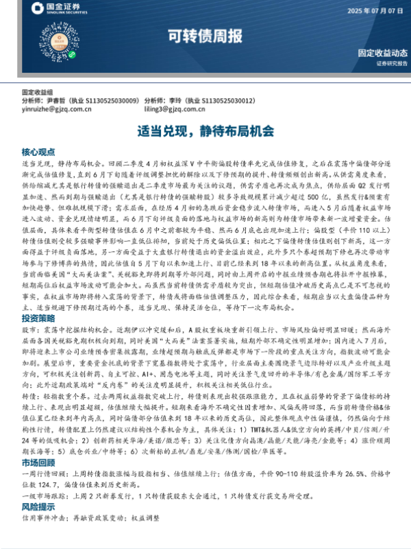【国金证券】【20250707】可转债周报:潜心埋伏,静待双击机会-14页