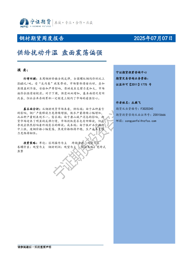 【宁证期货】【20250707】钢材期货周度报告_供给扰动升温_盘面震荡偏强-7页
