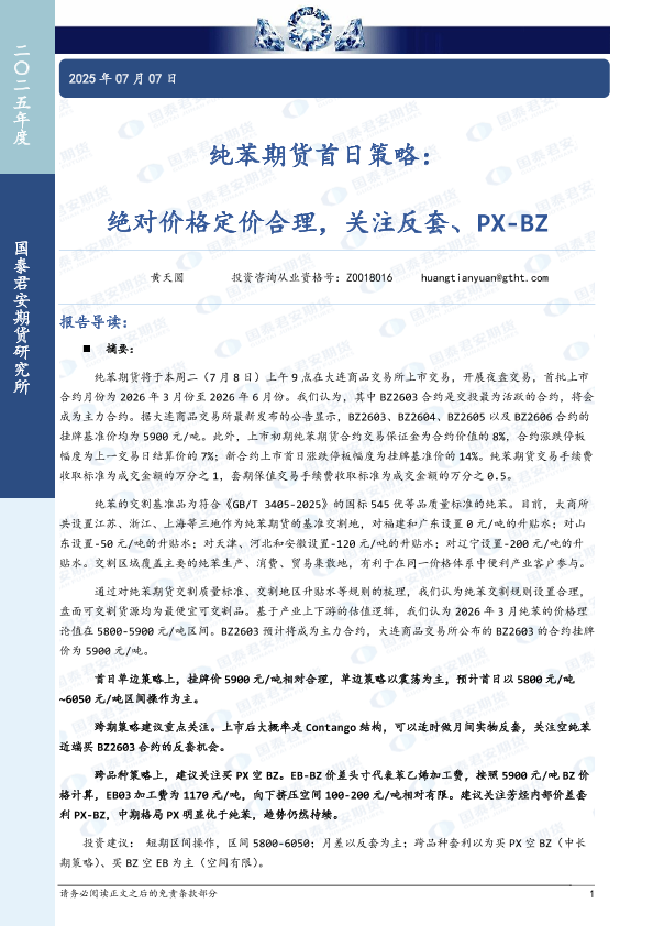 【国泰君安期货】【20250707】纯苯期货首日策略_绝对价格定价合理_关注反套_PX-BZ-14页