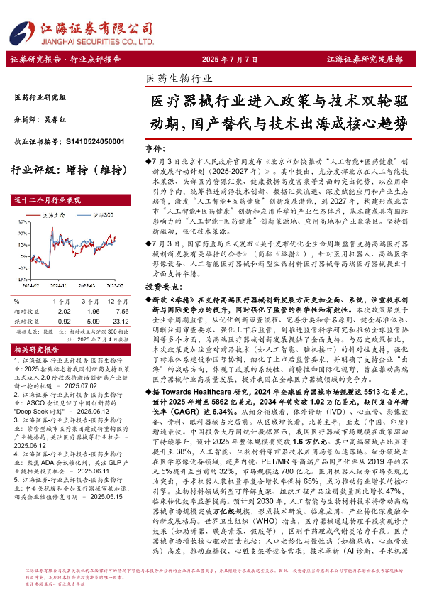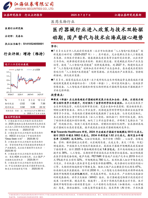 【江海证券】【20250707】医药生物行业_医疗器械行业进入政策与技术双轮驱动期_国产替代与技术出海成核心趋势-4页