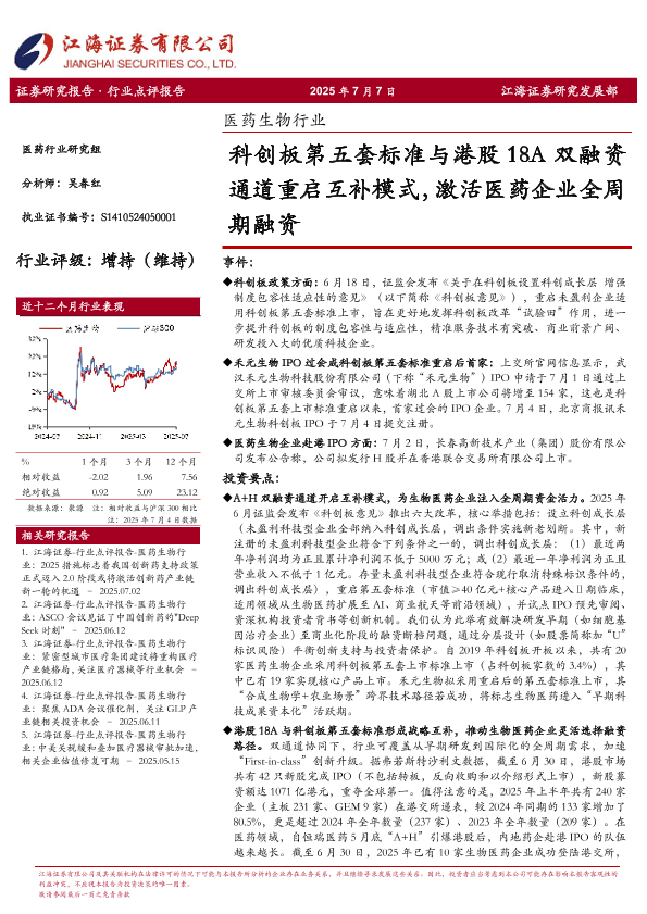 【江海证券】【20250707】科创板第五套标准与港股18A双融资通道重启互补模式_激活医药企业全周期融资-4页