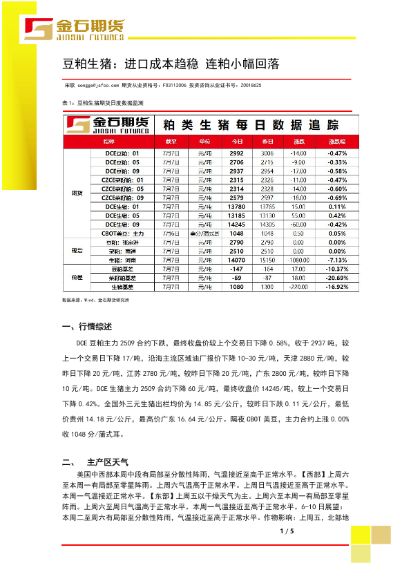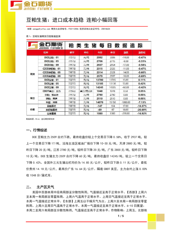 【金石期货】【20250707】豆粕生猪:进口成本趋稳连粕小幅回落-5页