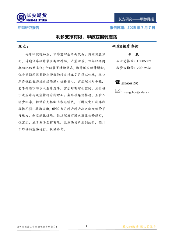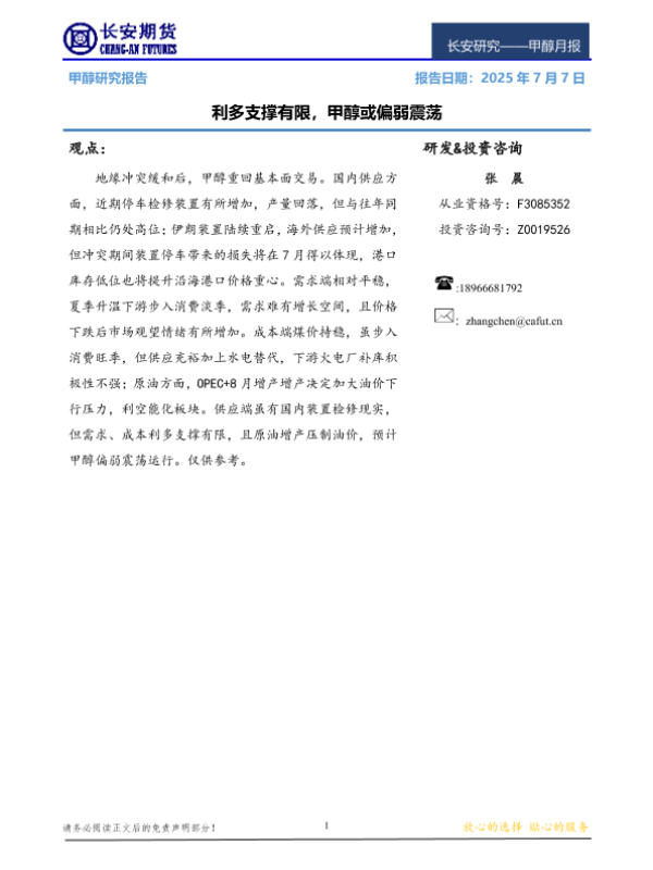 【长安期货】【20250707】甲醇月报_利多支撑有限_甲醇或偏弱震荡-11页