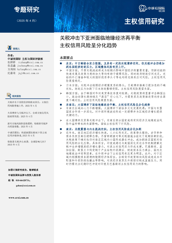 【中诚信国际】【202504】关税冲击下亚洲面临地缘经济再平衡_主权信用风险呈分化趋势-10页
