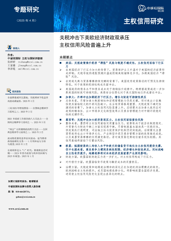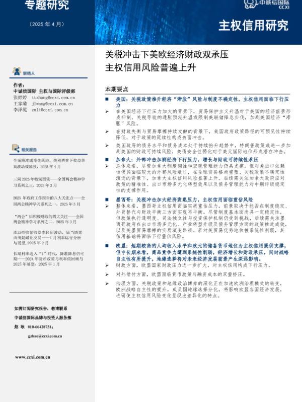 【中诚信国际】【20250708】关税冲击下美欧经济财政双承压_主权信用风险普遍上升-8页