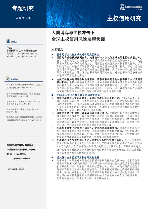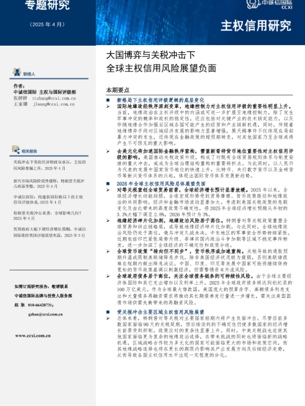 【中诚信国际】【202504】大国博弈与关税冲击下全球主权信用风险展望负面-8页