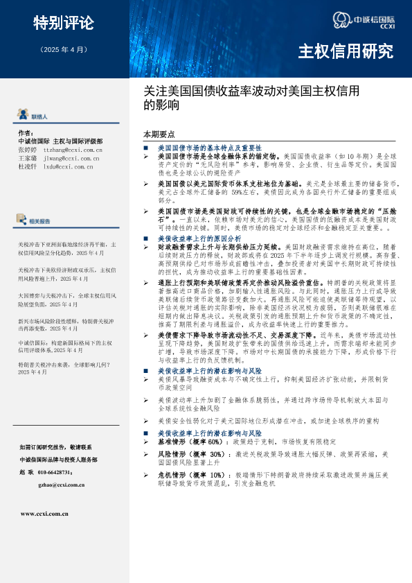 【中诚信国际】【20250708】关注美国国债收益率波动对美国主权信用的影响-9页