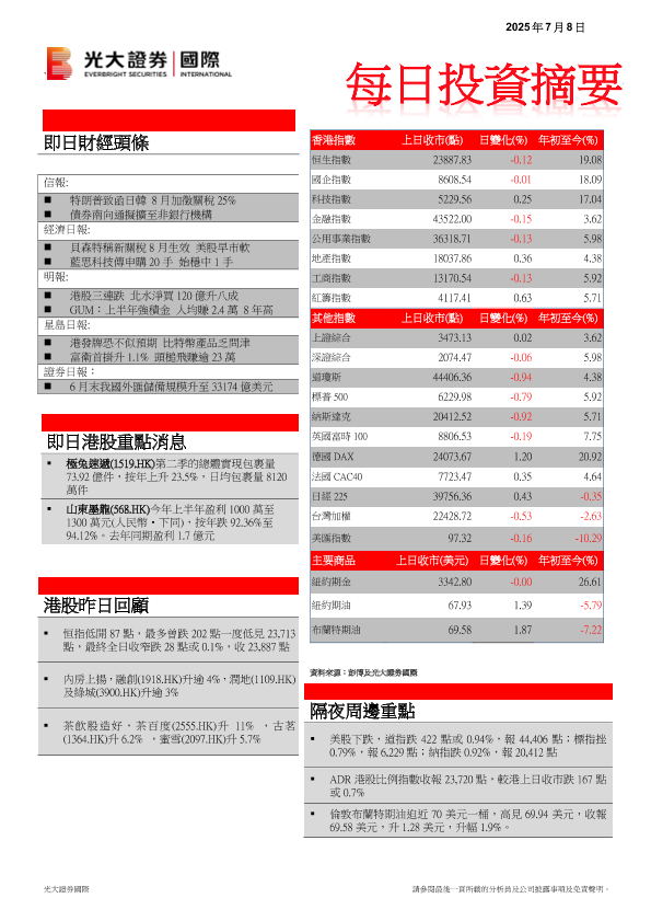 【光大证券(国际)】【20250708】每日投资摘要-10页