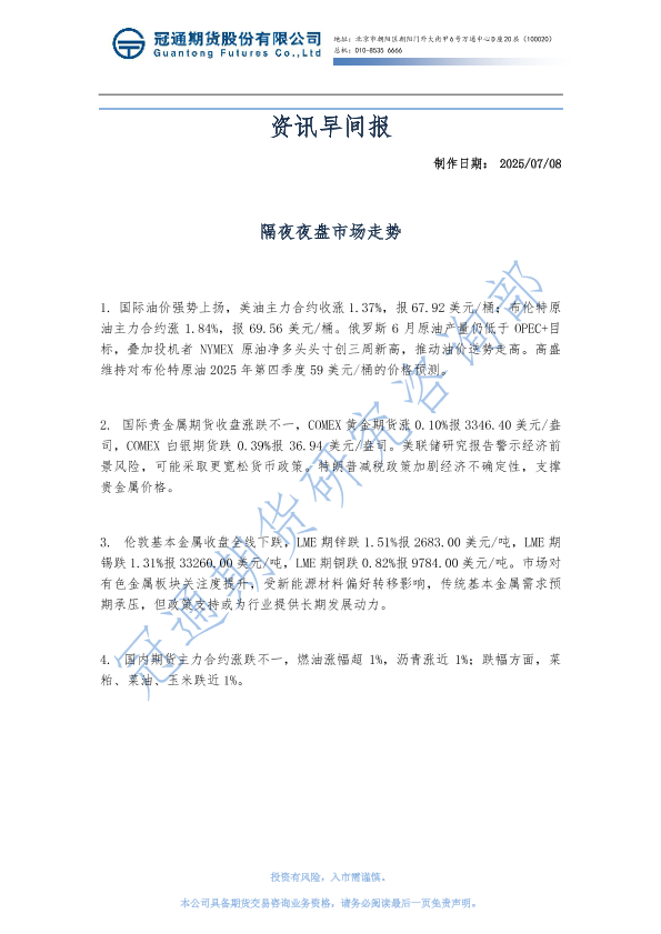 国际市场 宏观经济 期货市场 能源化工 金属期货