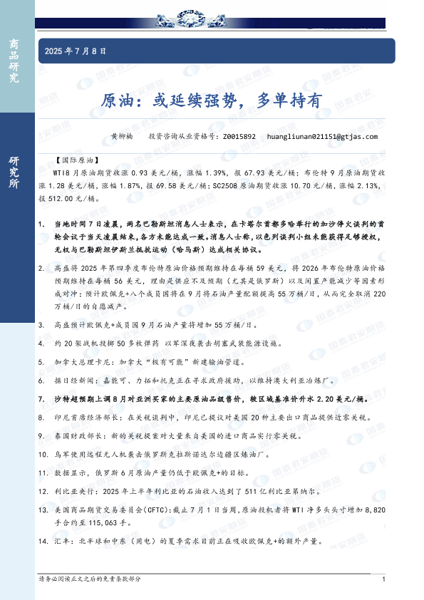 【国泰君安期货】【20250708】原油:或延续强势,多单持有-3页