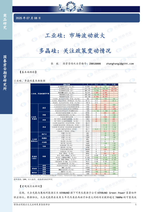 【国泰君安期货】【20250708】工业硅_市场波动放大_多晶硅_关注政策变动情况-3页