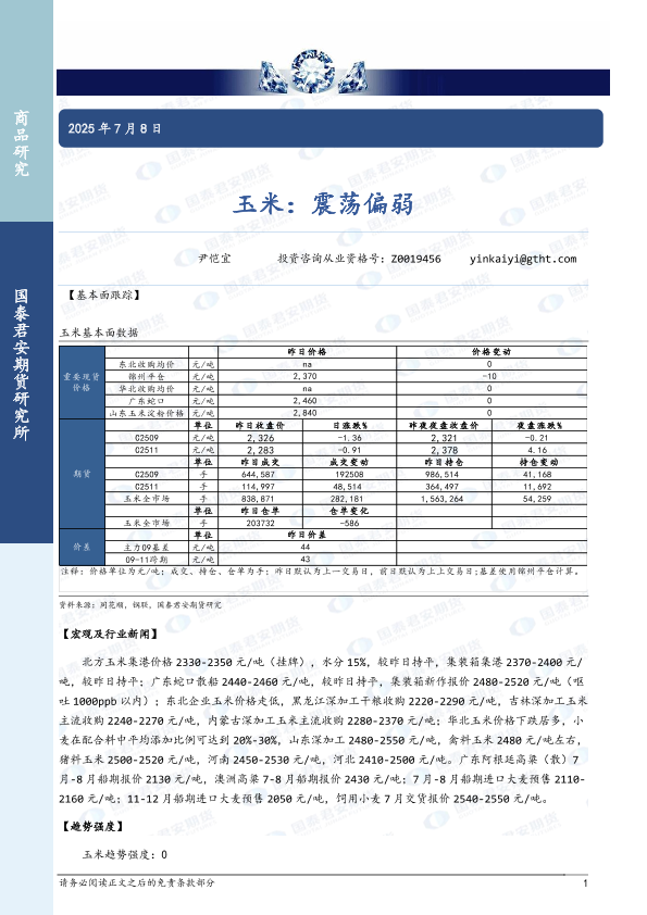 【国泰君安期货】【20250708】玉米:震荡偏弱-2页