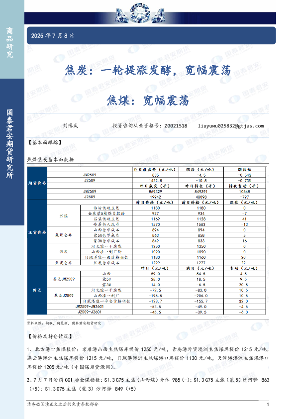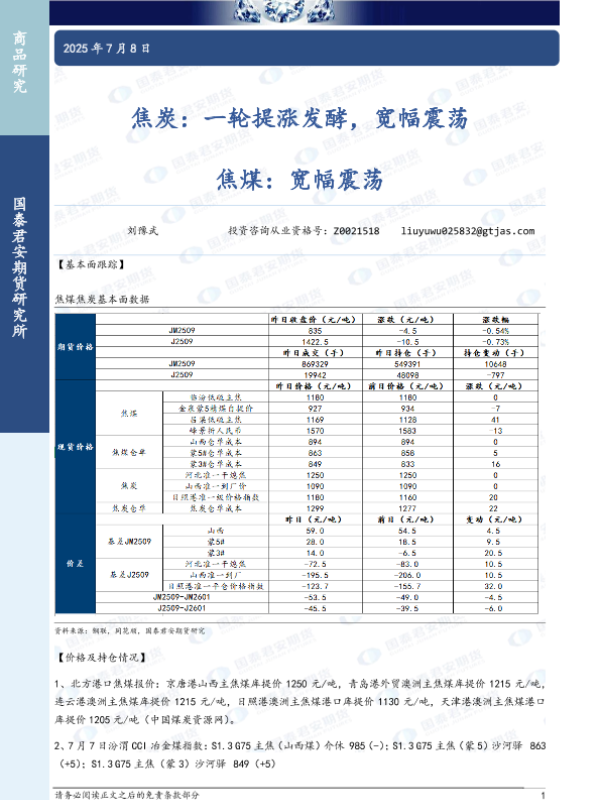 【国泰君安期货】【20250708】焦炭_一轮提涨发酵_宽幅震荡_焦煤_宽幅震荡-3页