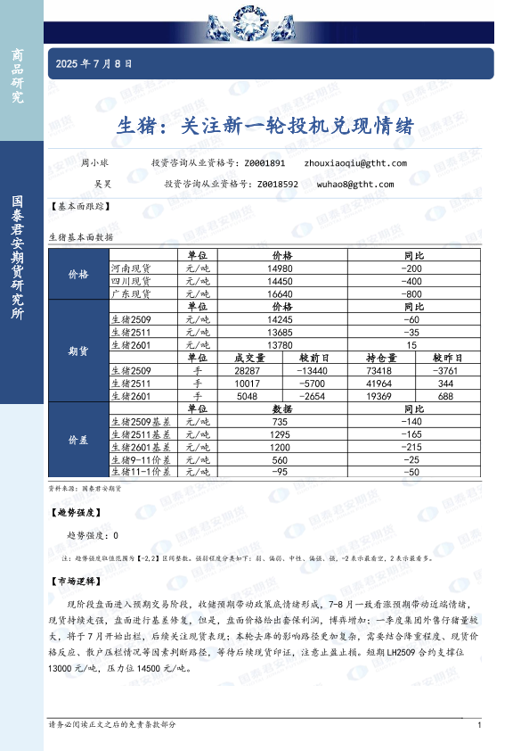 【国泰君安期货】【20250708】生猪:关注新一轮投机兑现情绪-2页