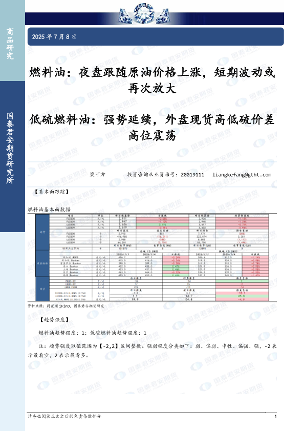 【国泰君安期货】【20250708】燃料油:夜盘跟随原油价格上涨,短期波动或再次放大-2页