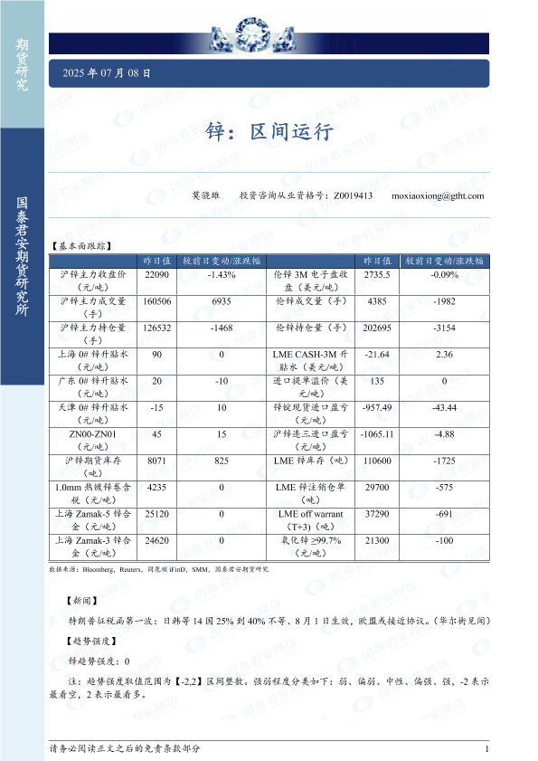 【国泰君安期货】【20250708】锌:区间运行-2页