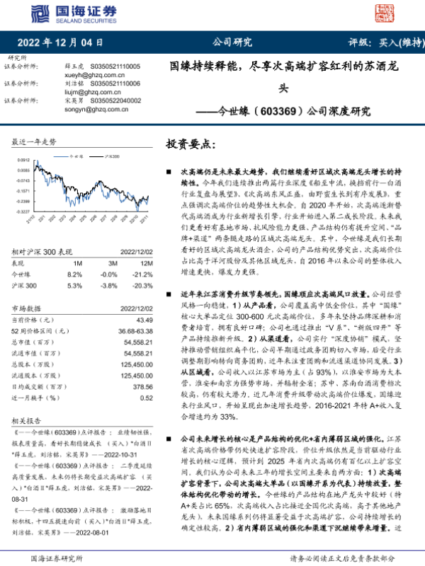 【国海证券】【20221204】公司深度研究:国缘持续释能,尽享次高端扩容红利的苏酒龙头-26页