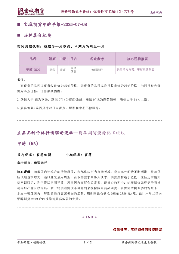 【宝城期货】【20250708】宝城期货甲醇早报-2页